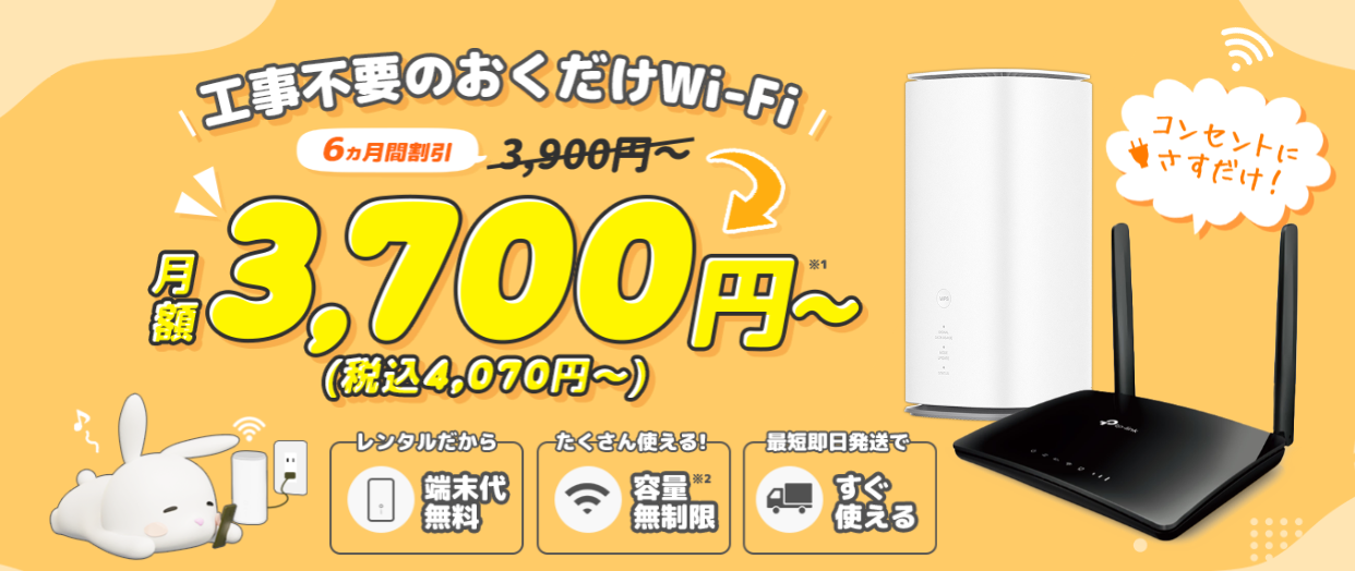 通常、ホームルーターは購入に1〜3万円かかることが一般的ですが、本サービスではレンタル方式を採用することで、初期負担を大きく軽減しています。