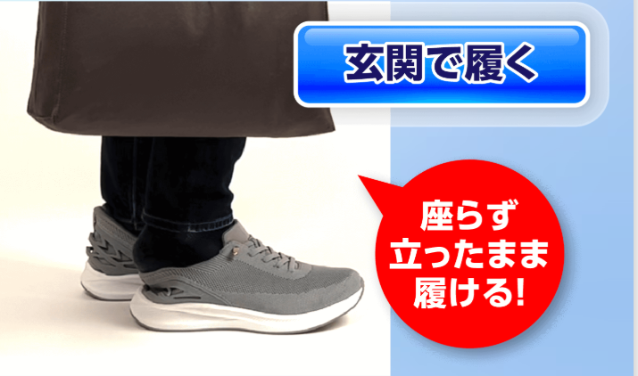 立ったままスッと足を滑り込ませるだけで履けるため、