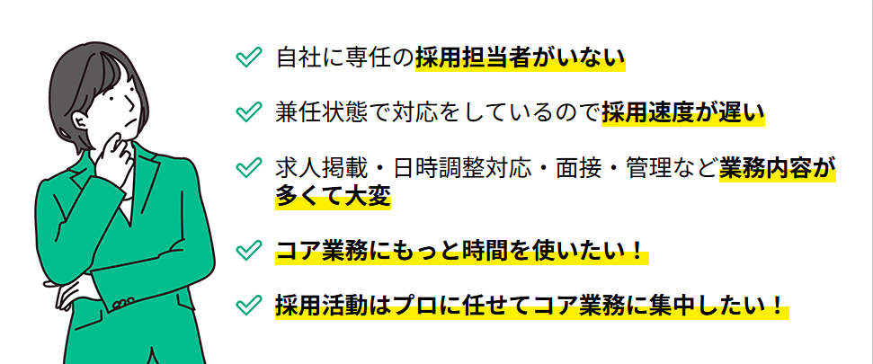 繁忙期のみの利用や、特定職種の採用サポートなど、