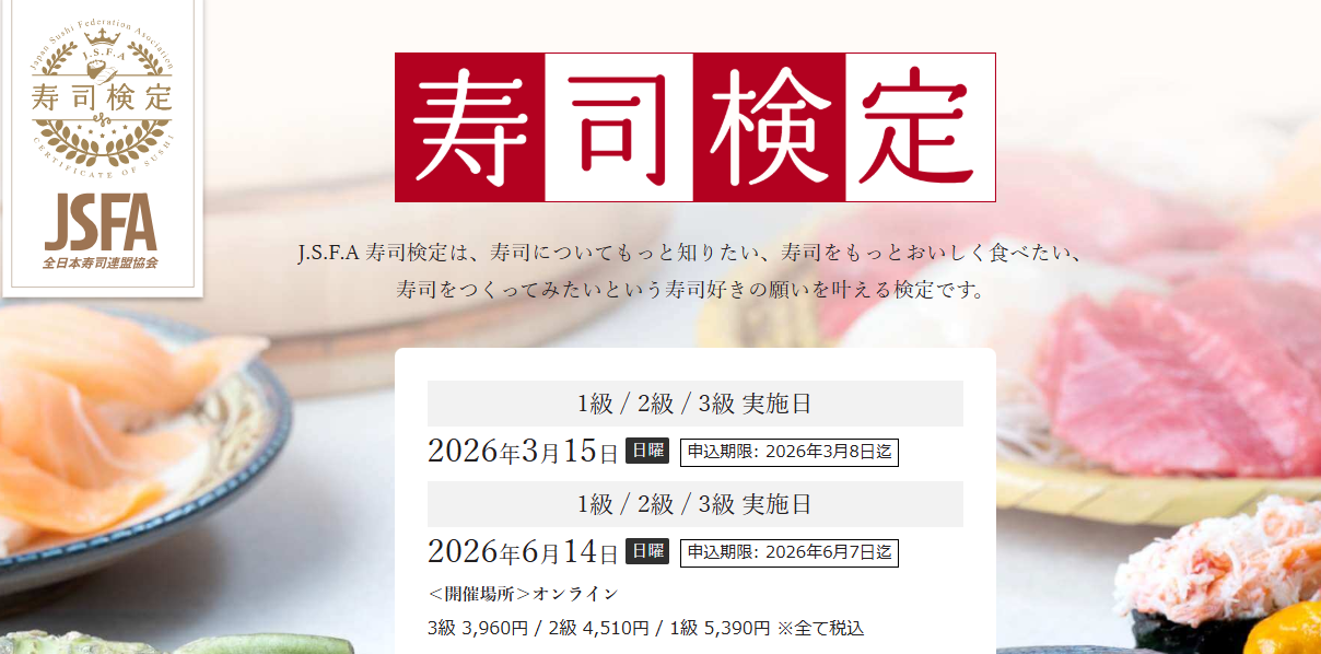 寿司検定のテキスト購入と検定申込をご活用ください。