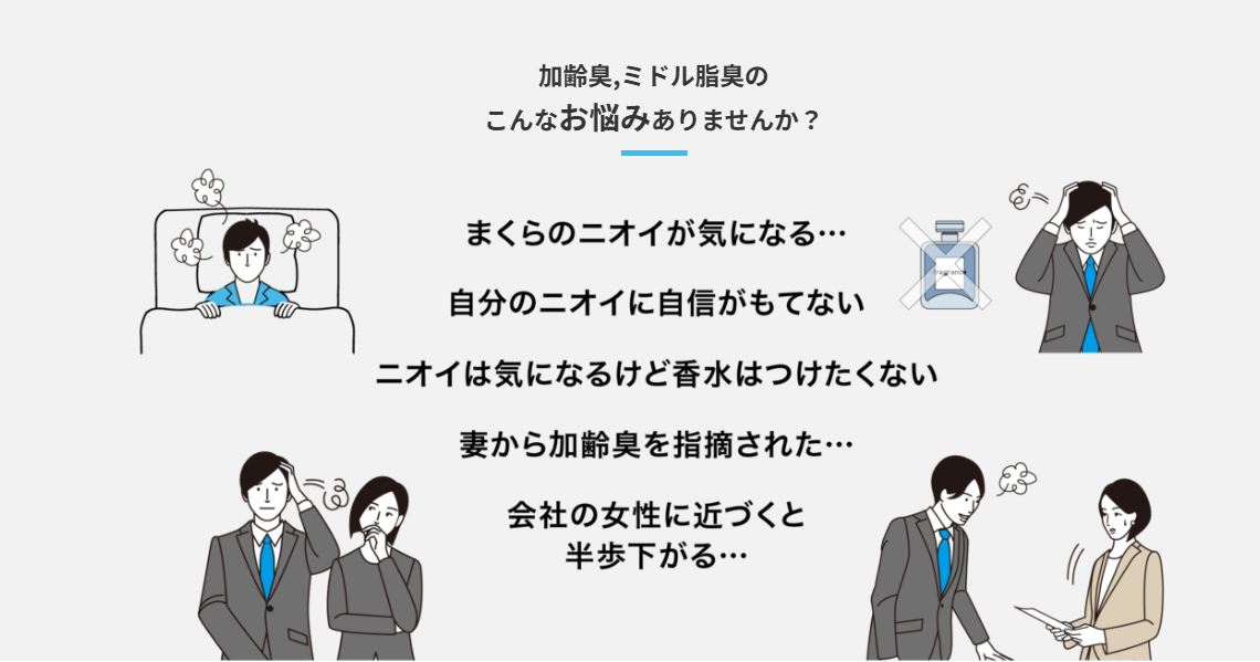 ビジネスシーンや外出時でも気兼ねなく使用できるニオイケア商品として、多くの男性に選ばれています。